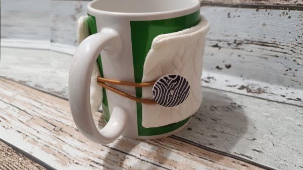 Dieser tolle Tassenwärmer hält nicht nur die Tasse warm, sondern schützt auch ihre Hände vor der heißen Tasse.